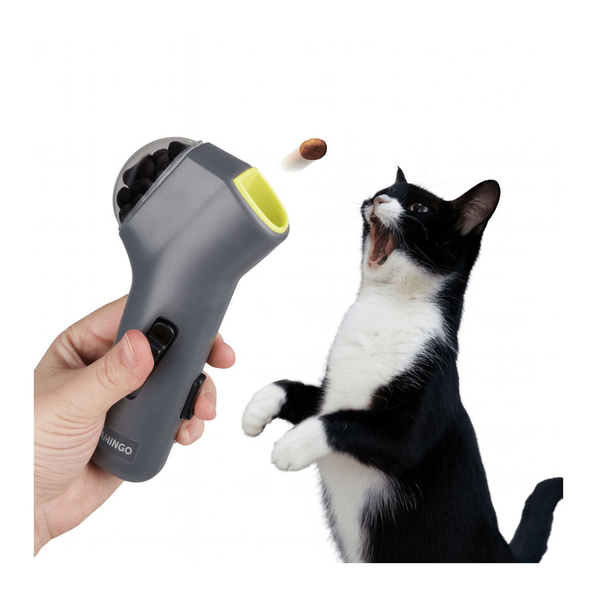 Möchten Sie Ihre Katze trainieren, ohne schmutzige Finger zu bekommen? Der Treat Launcher ist die Lösung! Bewahren Sie die Snacks im Launcher auf und starten Sie sie auf Knopfdruck. Ideal für Training oder Spiele. Belohnen Sie Ihre Katze auf eine lustige und saubere Art und Weise!